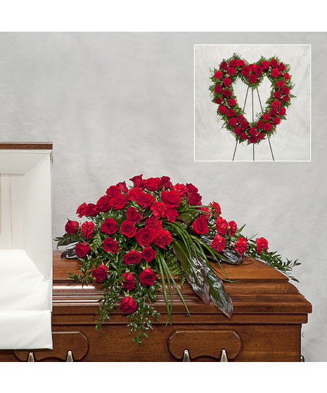 Love is so powerful that it lasts forever. This red roses cover will convey that in such a beautiful way. Includes red roses and greenery. A fitting tribute for man or woman.